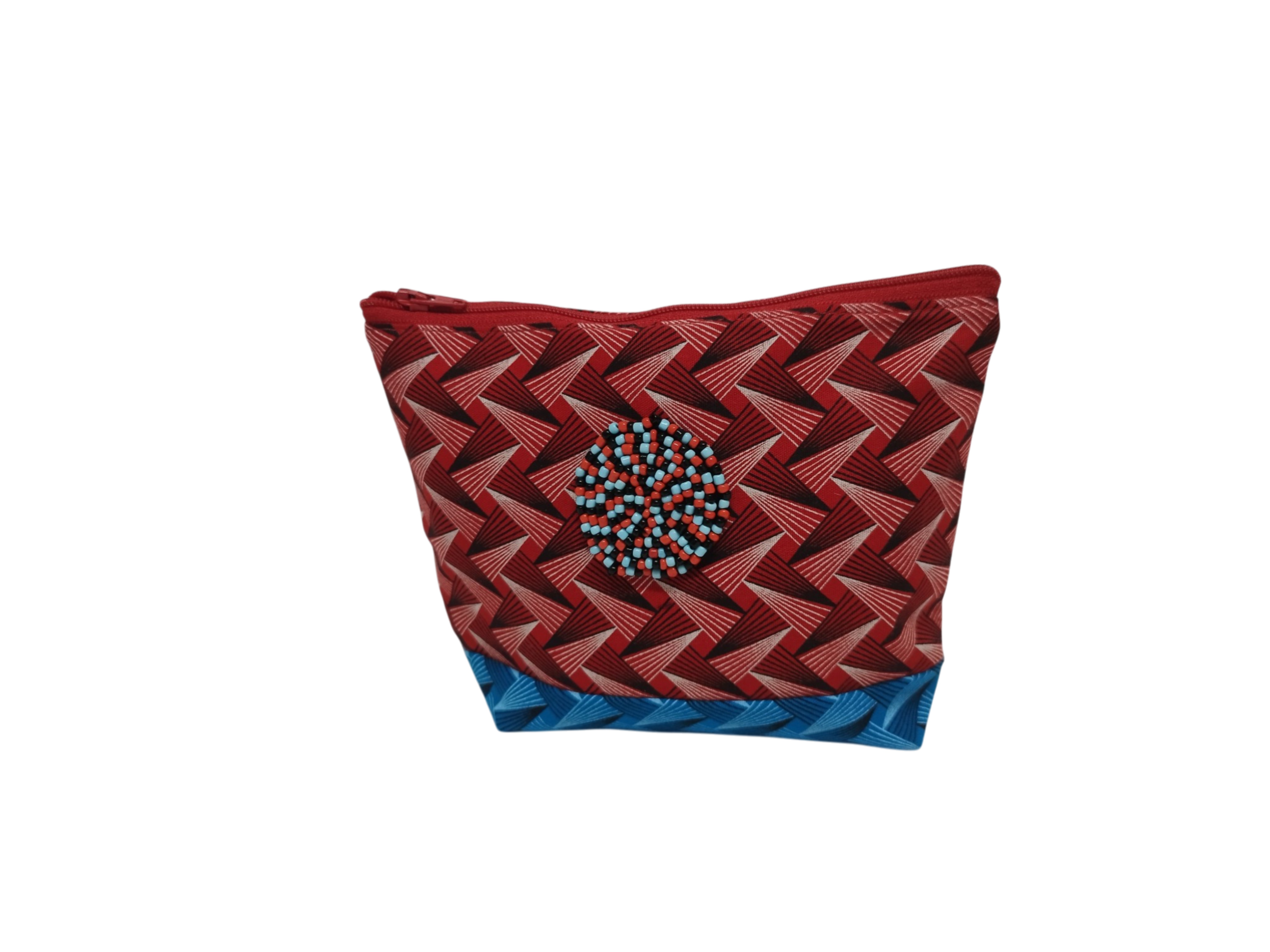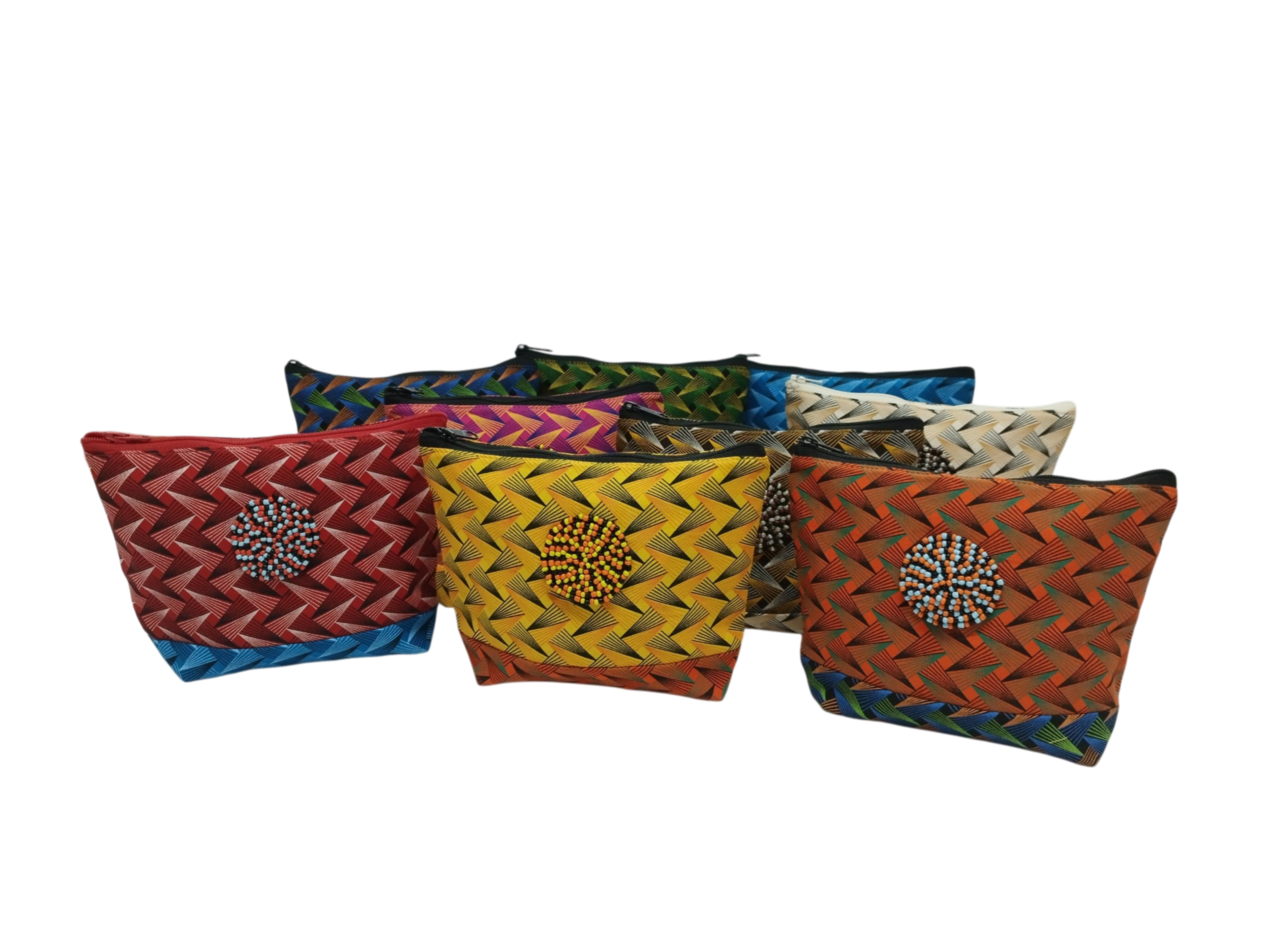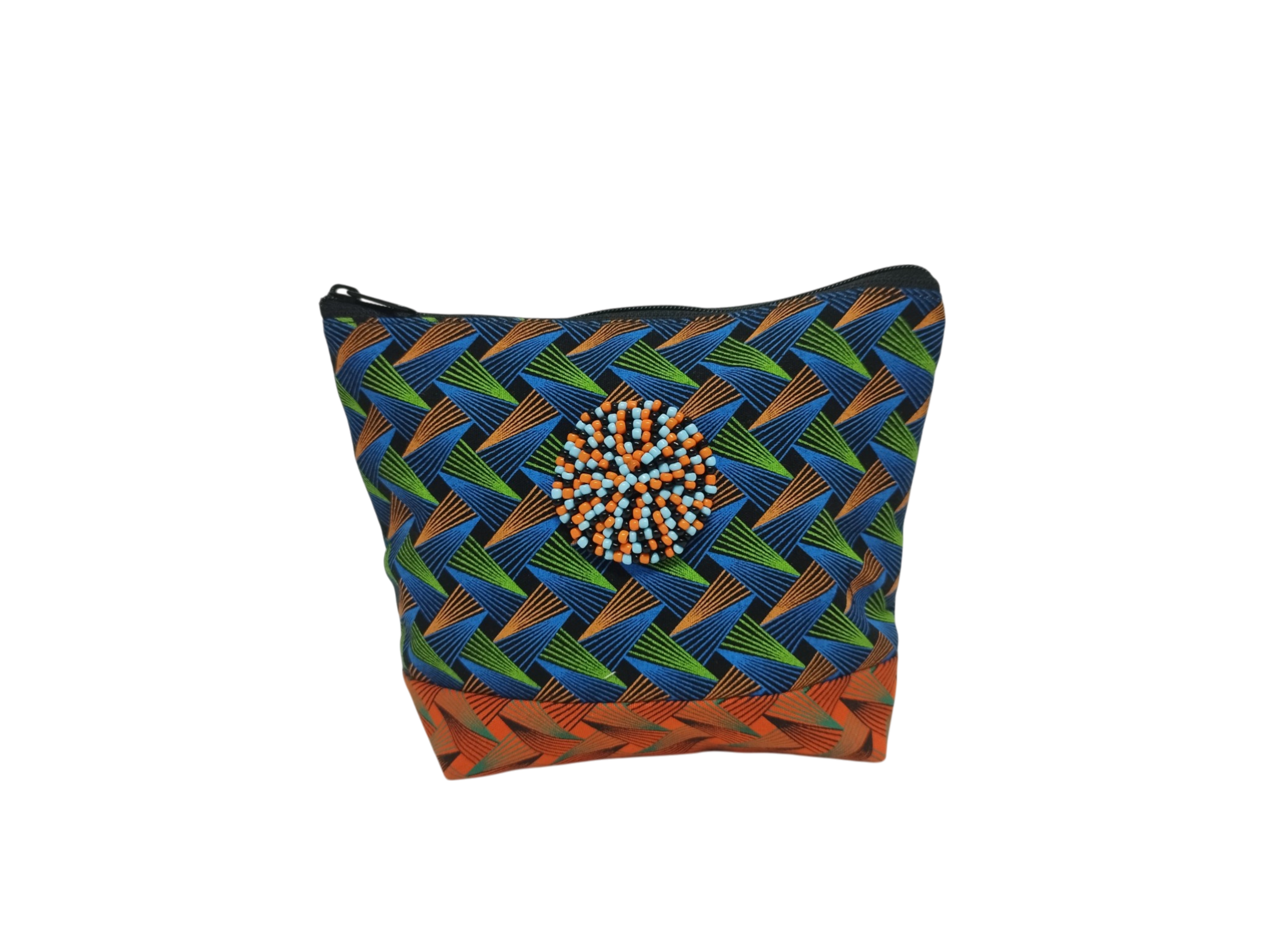 The cosmetic purse is made from 100% cotton Shweshwe 3 Cats material. This is the only material printed in South Africa. It comes in many different patterns and designs. The purse has a canvas lining with an inner pocket and zip closure. Fully washable in cold water it will stay as bright as the day you bought in. Comes in small and large.